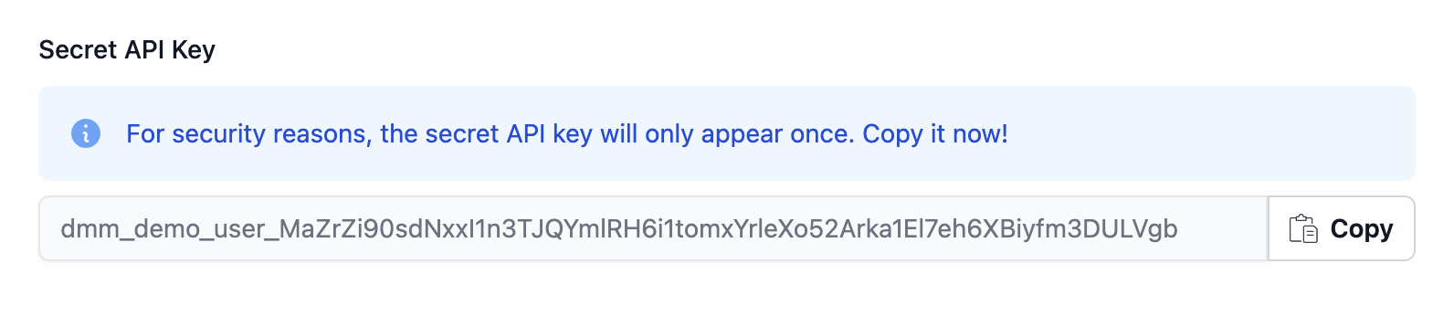 Save the Secret API key, it will not be displayed later. However, you can create new API keys at any time.