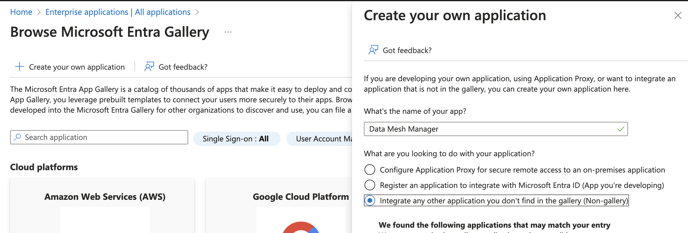 - Select Integrate any other application you don't find in the gallery (Non-gallery) and click Create