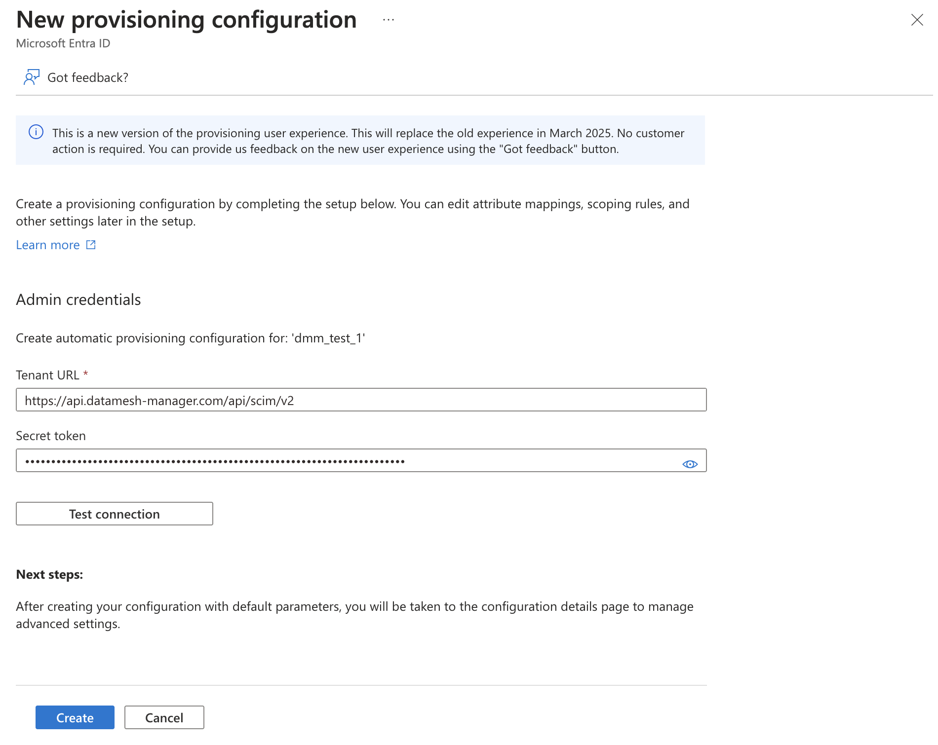 Note: The Microsoft tutorial refers to "on-premises" SCIM provisioning, but the steps are the same for Entropy Data Cloud and Self-Hosted deployments.